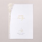 Hoesje voor jullie kerkboekje in de kleuren van jullie trouwkaart. Versierd met een lintje naar keuze (optioneel). br>De papieren in de binnenkant worden niet meegeleverd.