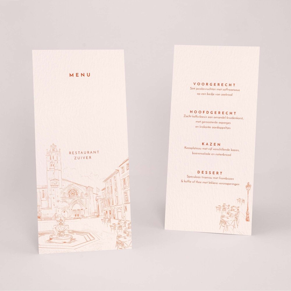 Jullie hebben het menu samengesteld voor de grote dag? Ga voor een menukaart dat bij jullie trouwkaart past!