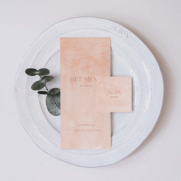Jullie hebben het menu samengesteld voor de grote dag? Ga voor een menukaart dat bij jullie trouwkaart past!