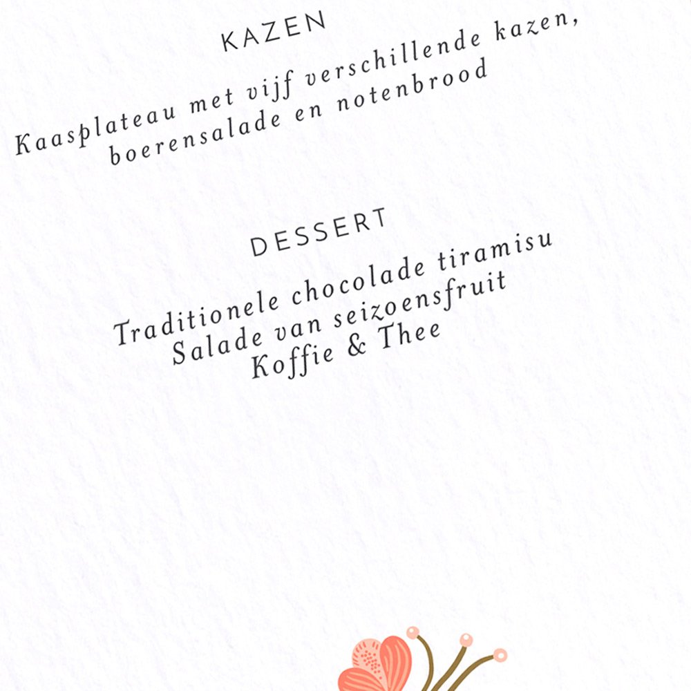 Jullie hebben het menu samengesteld voor de grote dag? Ga voor een menukaart dat bij jullie trouwkaart past!