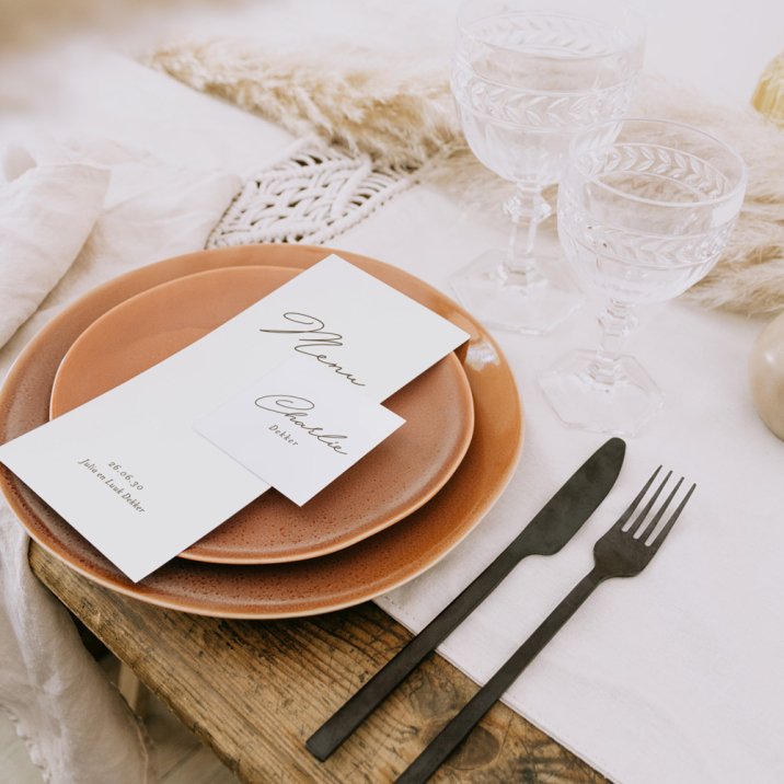 Jullie hebben het menu samengesteld voor de grote dag? Ga voor een menukaart dat bij jullie trouwkaart past!