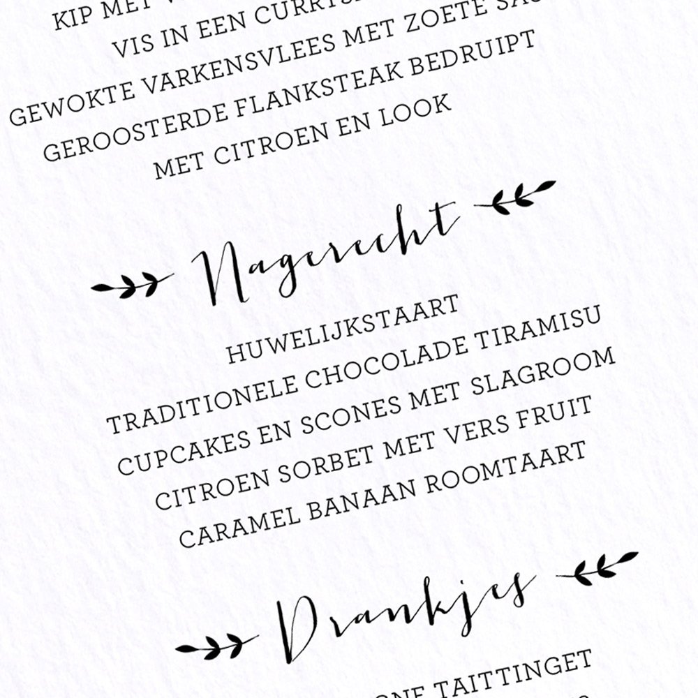 Jullie hebben het menu samengesteld voor de grote dag? Ga voor een menukaart dat bij jullie trouwkaart past!