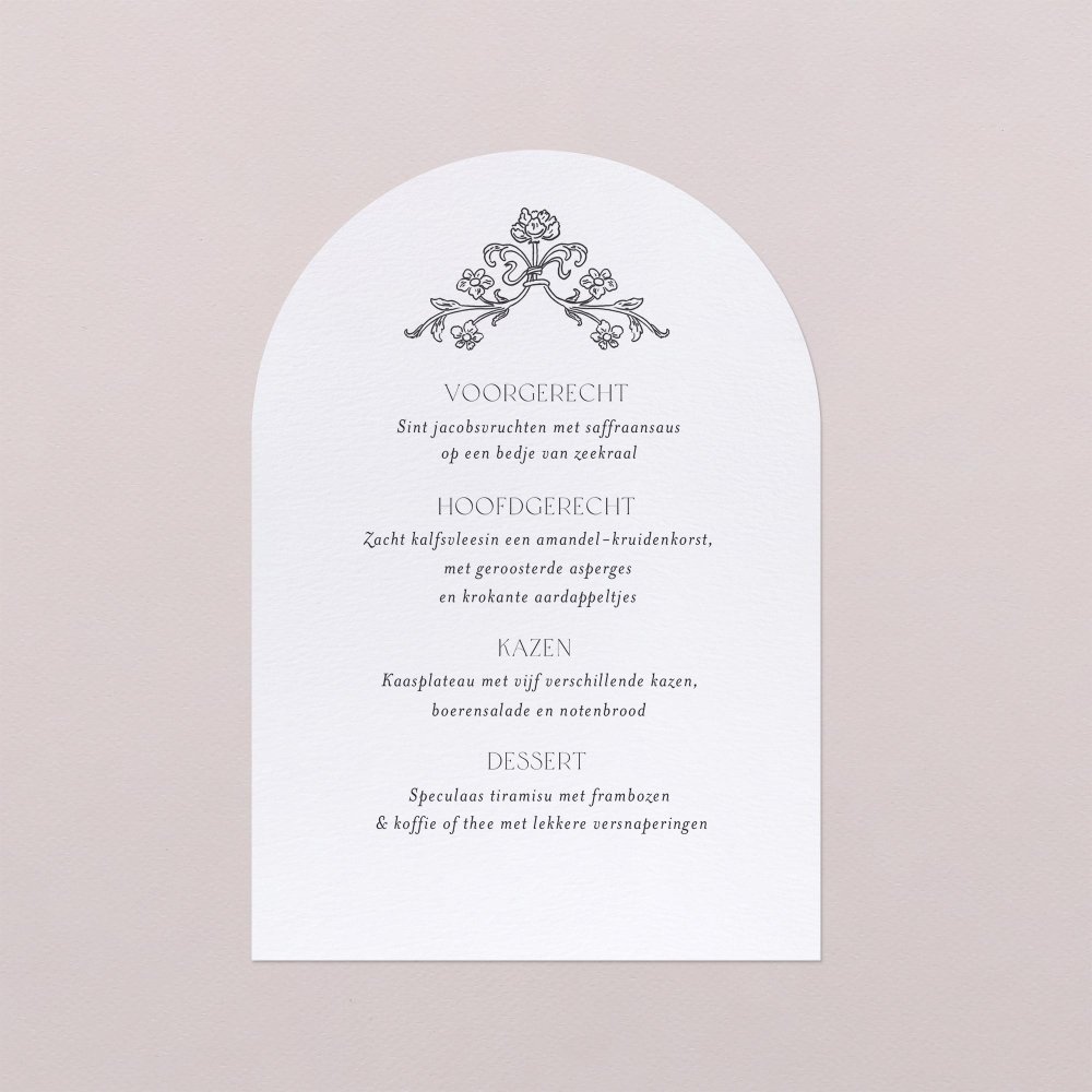 Laat het heerlijke feestmaal dat je gaat delen schitteren op deze originele huwelijksmenukaart.