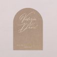 Met zijn elegante boogvormige uitsnijding zal deze huwelijksmenukaart, passend bij je uitnodigingen, prachtig passen bij je tafeldecoratie. Presenteer ze op elegante houten menuhouders (optioneel verkrijgbaar), leg er een op elk bord en maak ze extra speciaal met een mooie strik...