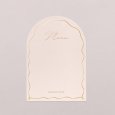 Met zijn elegante boogvormige uitsnijding zal deze huwelijksmenukaart, passend bij je uitnodigingen, prachtig passen bij je tafeldecoratie. Presenteer ze op elegante houten menuhouders (optioneel verkrijgbaar), leg er een op elk bord en maak ze extra speciaal met een mooie strik...
