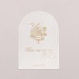 Met zijn elegante boogvormige uitsnijding zal deze huwelijksmenukaart, passend bij je uitnodigingen, prachtig passen bij je tafeldecoratie. Presenteer ze op elegante houten menuhouders (optioneel verkrijgbaar), leg er een op elk bord en maak ze extra speciaal met een mooie strik...