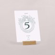 Plaats het tafelnummerkaartje in het midden van de tafel zodat het goed zichtbaar is voor jullie gasten. Zo vinden ze snel hun plek na het aflezen van hun tafelnummer op het tafelplan.