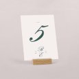 Plaats het tafelnummerkaartje in het midden van de tafel zodat het goed zichtbaar is voor jullie gasten. Zo vinden ze snel hun plek na het aflezen van hun tafelnummer op het tafelplan.
