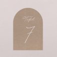 Plaats het tafelnummerkaartje in het midden van de tafel zodat het goed zichtbaar is voor jullie gasten. Zo vinden ze snel hun plek na het aflezen van hun tafelnummer op het tafelplan.