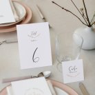 Plaats het tafelnummerkaartje in het midden van de tafel zodat het goed zichtbaar is voor jullie gasten. Zo vinden ze snel hun plek na het aflezen van hun tafelnummer op het tafelplan.