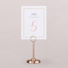 Plaats het tafelnummerkaartje in het midden van de tafel zodat het goed zichtbaar is voor jullie gasten. Zo vinden ze snel hun plek na het aflezen van hun tafelnummer op het tafelplan.