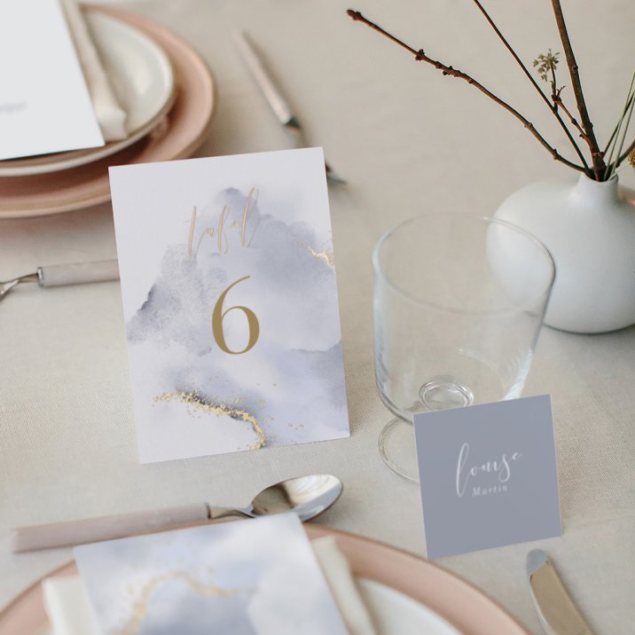 Plaats het tafelnummerkaartje in het midden van de tafel zodat het goed zichtbaar is voor jullie gasten. Zo vinden ze snel hun plek na het aflezen van hun tafelnummer op het tafelplan.