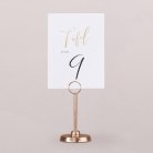 Plaats het tafelnummerkaartje in het midden van de tafel zodat het goed zichtbaar is voor jullie gasten. Zo vinden ze snel hun plek na het aflezen van hun tafelnummer op het tafelplan.
