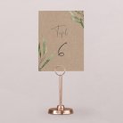 Plaats het tafelnummerkaartje in het midden van de tafel zodat het goed zichtbaar is voor jullie gasten. Zo vinden ze snel hun plek na het aflezen van hun tafelnummer op het tafelplan.
