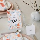 Plaats het tafelnummerkaartje in het midden van de tafel zodat het goed zichtbaar is voor jullie gasten. Zo vinden ze snel hun plek na het aflezen van hun tafelnummer op het tafelplan.
