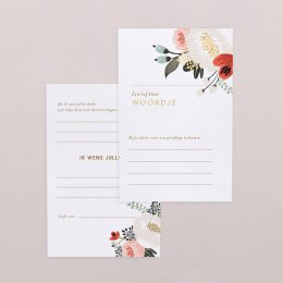 Plaats het tafelnummerkaartje in het midden van de tafel zodat het goed zichtbaar is voor jullie gasten. Zo vinden ze snel hun plek na het aflezen van hun tafelnummer op het tafelplan.