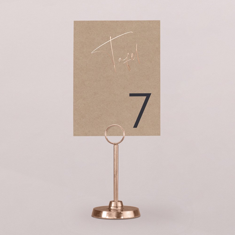Plaats het tafelnummerkaartje in het midden van de tafel zodat het goed zichtbaar is voor jullie gasten. Zo vinden ze snel hun plek na het aflezen van hun tafelnummer op het tafelplan.