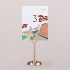 Plaats het tafelnummerkaartje in het midden van de tafel zodat het goed zichtbaar is voor jullie gasten. Zo vinden ze snel hun plek na het aflezen van hun tafelnummer op het tafelplan.
