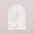 Geplaatst in het midden van elke tafel, zal dit tafelnummer in de vorm van een boog je gasten helpen hun ereplaats voor de avond te vinden.