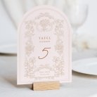 Geplaatst in het midden van elke tafel, zal dit tafelnummer in de vorm van een boog je gasten helpen hun ereplaats voor de avond te vinden.