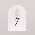 Geplaatst in het midden van elke tafel, zal dit tafelnummer in de vorm van een boog je gasten helpen hun ereplaats voor de avond te vinden.