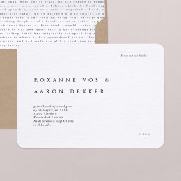 Een lief labeltje voor aan een doosje of ander klein cadeautje voor jullie gasten. Bewerk het kaartje helemaal naar jullie smaak, met jullie namen en de datum van jullie bruiloft of met een bedanktekstje. De labeltjes maken jullie huisstijl helemaal af en worden vaak bewaard als souvenir door jullie gasten.