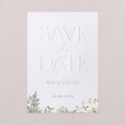 Kondig je bruiloft aan en maak je gasten zo snel mogelijk vast met een unieke save the date in reliëf. Deze grafisch aantrekkelijke save the date heeft reliëfletters die met de hand op het papier zijn aangebracht. Het combineert vakkundig een minimalistische stijl met moderne flair en zal gegarandeerd indruk maken op je gasten.