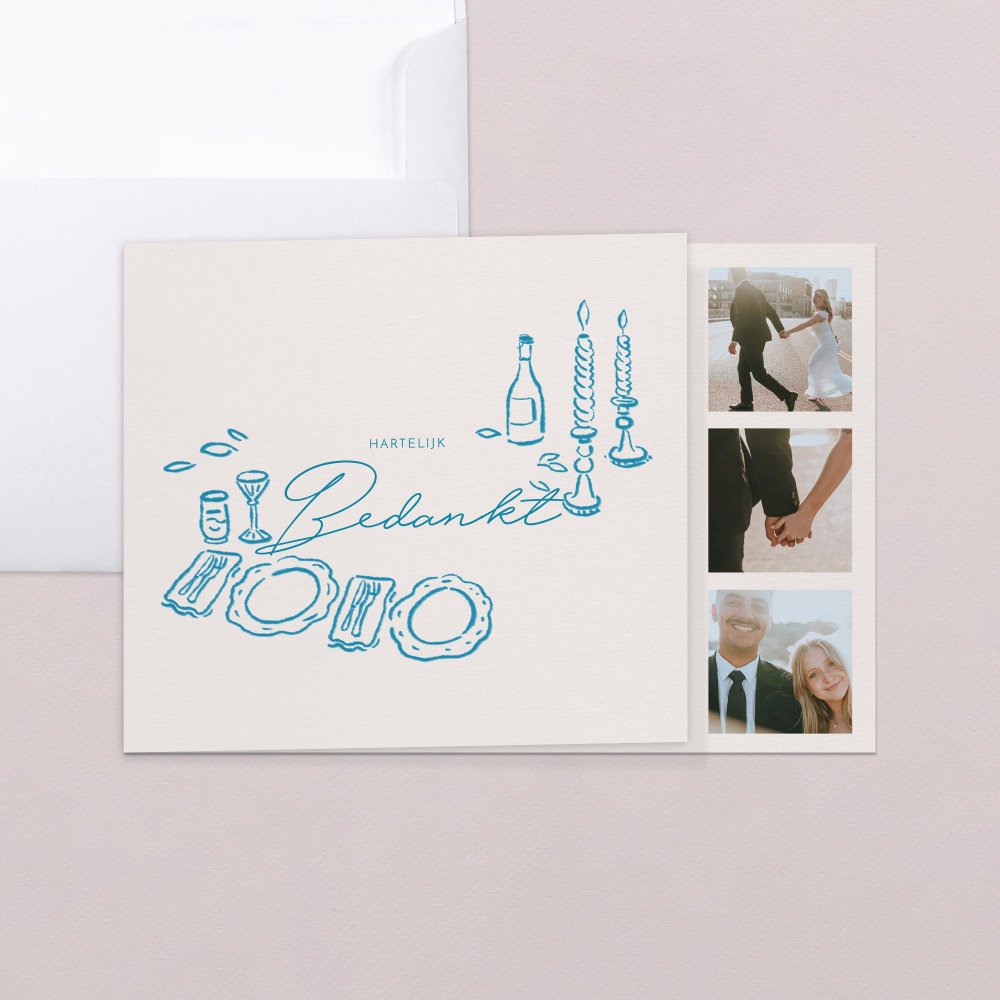 Deze bedankkaart is een prachtige en eigentijdse keuze. De kaart biedt voldoende ruimte voor een persoonlijke tekst en foto's, waardoor jullie mooiste trouwfoto's een onvergetelijke herinnering voor jullie en jullie naasten blijven.