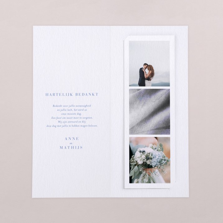 Stuur een fotostrip met jullie mooiste trouwfoto's als bedankje naar jullie gasten.