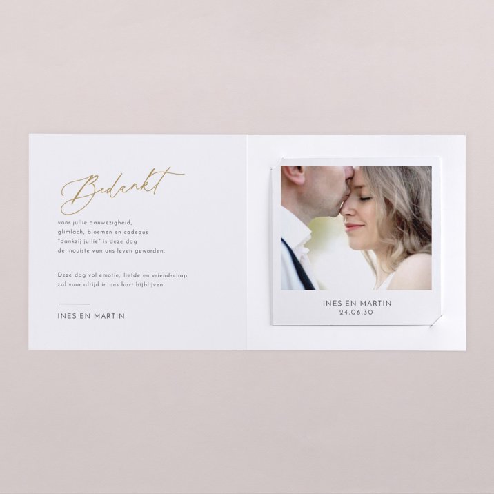 Stuur een polaroid met jullie mooiste trouwfoto als bedankje naar jullie gasten.
