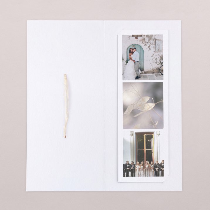 Stuur een fotostrip met jullie mooiste trouwfoto's als bedankje naar jullie gasten. De fotostrip wordt in de binnenkant van de kaart geplaatst en