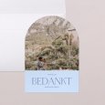Deze bedankkaart wordt gekenmerkt door zijn afgeronde bovenranden in de vorm van een boog en kan aan de voor- en achterkant worden gepersonaliseerd met een lief berichtje.