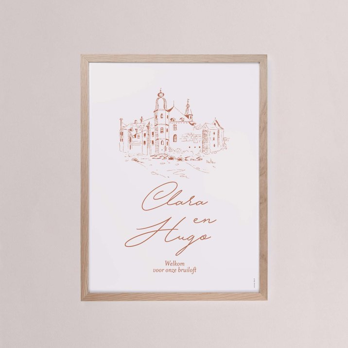 Personaliseer het trouwbord naar wens: "Welkom", "Welcome", "Bienvenu", "Welkom op de bruiloft van ..."