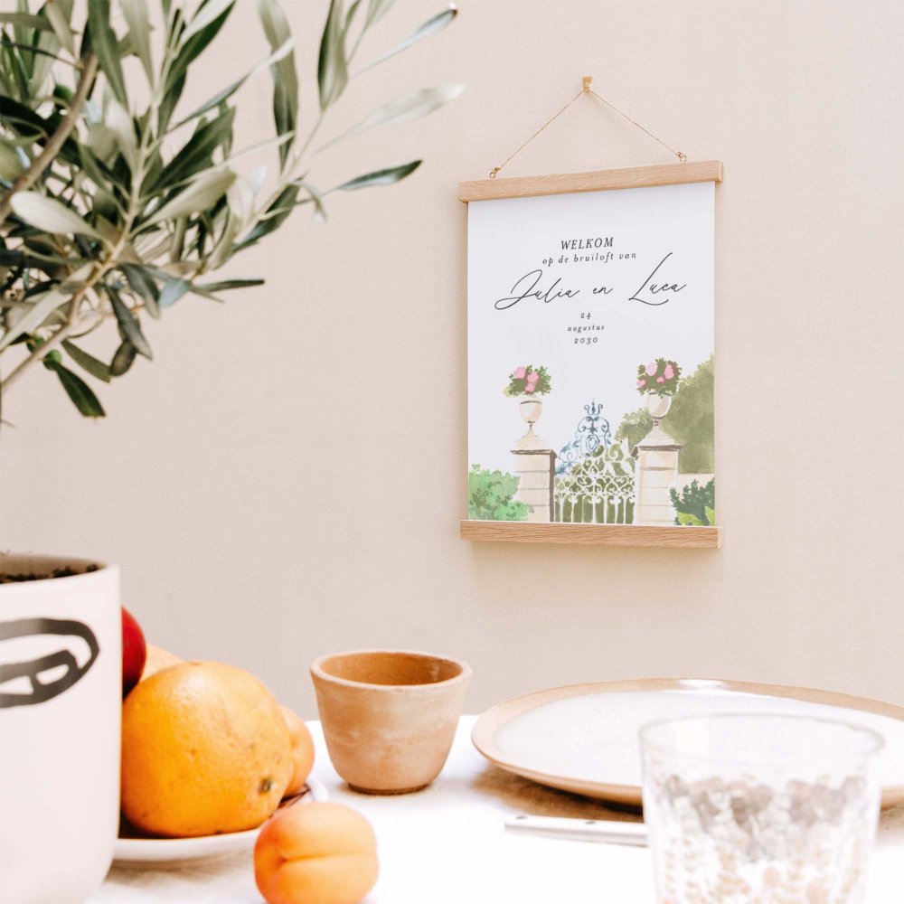 Verwelkom je gasten op je bruiloft met een mooi welkomstbord.