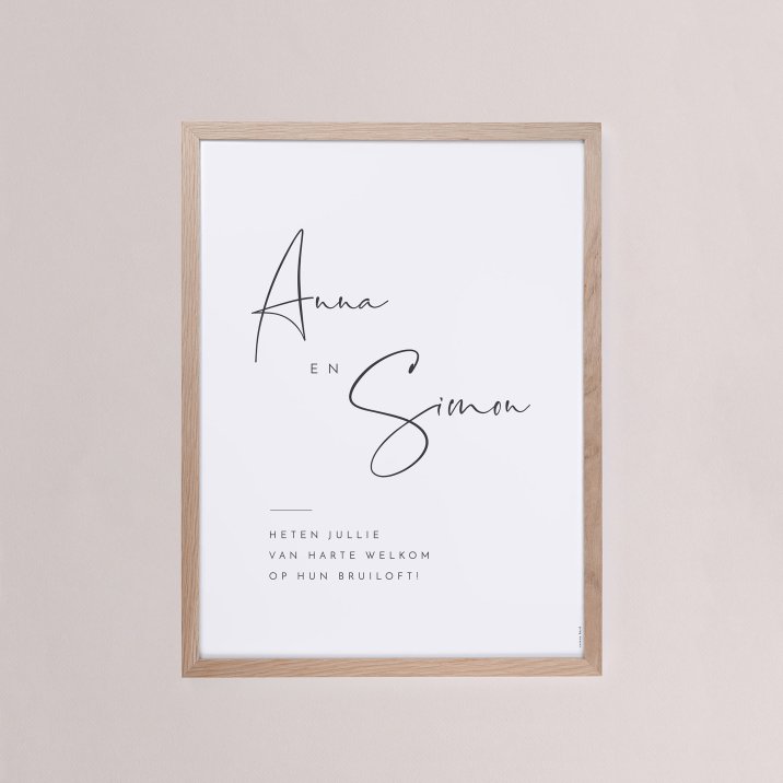 Personaliseer het trouwbord naar wens: "Welkom", "Welcome", "Bienvenu", "Welkom op de bruiloft van ..."