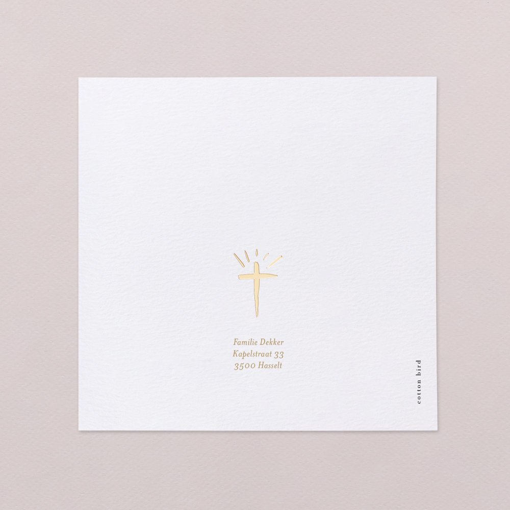 Deze uitnodiging voor doop, communie of lentefeest is een dubbele kaart. Bij het open plooien is er aan de binnenkant plaats voor een foto en je eigen tekst.