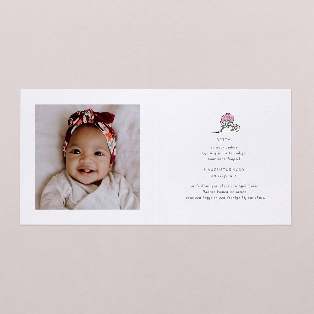 Deze uitnodiging voor doop, communie of lentefeest is een dubbele kaart. Bij het open plooien is er aan de binnenkant plaats voor een foto en je eigen tekst.