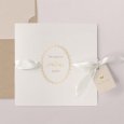 Deze vierkant gevouwen kaart heeft drie voorgestanste gaatjes en wordt geleverd met een persoonlijk label. Om het ontwerp van de kaart perfect af te ronden, raden we aan het label aan de kaart te bevestigen met een bijpassend lint. (Lint niet inbegrepen).
