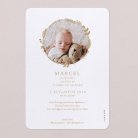 De doopkaart Bloemenkrans met edel goud en warme kraftpapier-look kondigt het blije nieuws van de doop van je kind op een elegante manier aan. Een bloemenkrans van goudfolie siert de naam van je kleine uk. Nodig je familie en vrienden uit voor deze speciale gelegenheid met deze mooie uitnodiging.