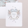 Op het doopkaartje Arthur staat de naam van uw kind in het midden van een delicaat bloemenontwerp in roze en geel, tot leven gebracht door schattige vlinders en vogels. Een unieke creatie met vintage details, perfect om de doop van uw meisje of jongen op een bijzondere manier aan te kondigen.