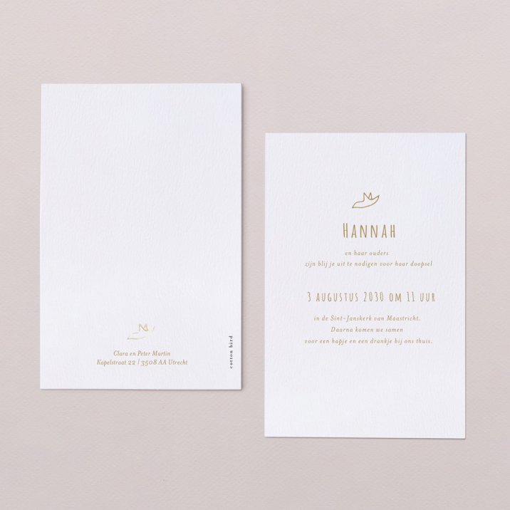 Onze dienst Bird Postal biedt de mogelijkheid om gemakkelijk een digitale versie van uw uitnodigingen te versturen. Als u besteld hebt bij ons, schrijf dan gerust een berichtje aan onze klantenservice voor een digitale uitvoering!