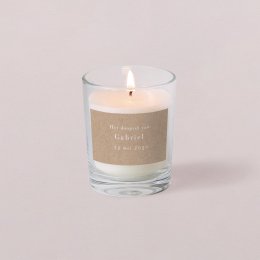 Bedank de aanwezige dierbaren op de doopceremonie van je kind met deze gepersonaliseerde kleine kaars. De delicate geur met tonen van vijgen zal je gasten herinneren aan de gedeelde emotionele momenten tijdens deze speciale gelegenheid.