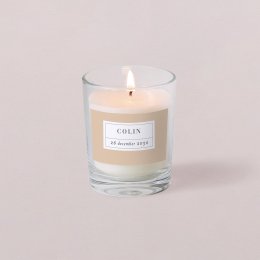 Bedank de aanwezige dierbaren op de doopceremonie van je kind met deze gepersonaliseerde kleine kaars. De delicate geur met tonen van vijgen zal je gasten herinneren aan de gedeelde emotionele momenten tijdens deze speciale gelegenheid.