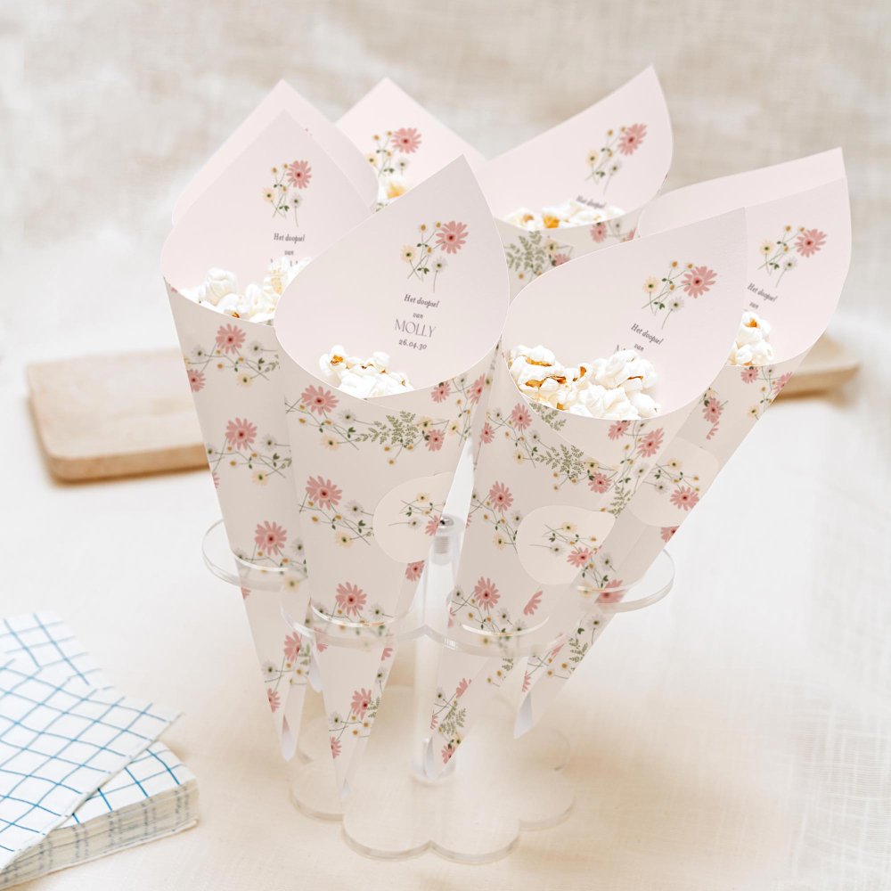 Vul deze hoorntjes met popcorn, snoepjes of confetti en plaats ze in een prachtige mand. Geef een origineel en lekker cadeautje aan je gasten!