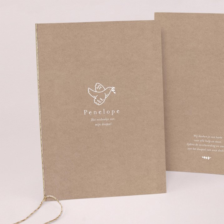 Bundel de mooie woorden van dit plechtige moment in met een bijpassend kaftje, in dezelfde stijl als de uitnodiging van het doop, communie of lentefeest.Print de tekst op A4 papier en plaats deze vervolgens in het kaftje voor het creëren van een kerkboekje. Ook te gebruiken als gastenboek, of tekenboekje voor de minigasten. Een extra lintje (optioneel) bindt de inhoud strak samen tot een mooi geheel.