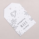 Deze cadeaulabels zijn ideaal voor het afwerken van originele bedankjes voor de doop van je kindje. Dankzij de perforatie kan je er moeiteloos een lintje doorrijgen en bevestigen aan een snoepdoosje of ander klein cadeautje. (lintje optioneel naar keuze)