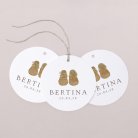 Deze ronde cadeaulabels zijn ideaal voor het afwerken van originele bedankjes voor de doop van je kindje. Dankzij de perforatie kan je er moeiteloos een lintje doorrijgen en bevestigen aan een snoepdoosje of ander klein cadeautje. (lintje optioneel naar keuze)