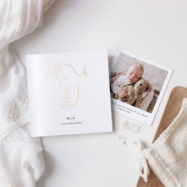 Bedank je dierbaren die je verwend hebben met cadeaus ter gelegenheid van de doop van je kind met een mooie, gepersonaliseerde kaart.