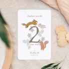 De met waterverf geïllustreerde dieren op de Wild Forest-kaart zijn de ondeugende boodschappers van de komende de verjaardag van je kleintje.