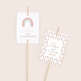 Personaliseer dit originele en exclusieve design met de naam van je kind, de gevierde leeftijd, de datum, plaats en tijd van het evenement. Er is ook een ruimte voorzien om een eigen uitnodigingstekst toe te voegen.